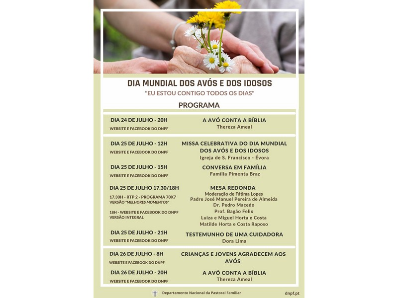 No próximo domingo, dia 25, celebra-se o primeiro Dia Mundial dos Avós e dos Idosos, instituído pelo Papa Francisco no passado dia 31 de janeiro. A festa litúrgica de S. Joaquim e Santa Ana, pais de Nossa Senhora e avós de Jesus, era o dia em que, tradicionalmente se foi celebrando o dia dos avós.