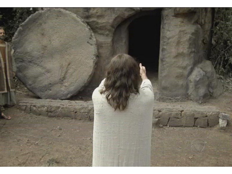 Junto do sepulcro, Jesus comove-se interiormente, mas exteriormente está diante do grandioso sinal da morte do seu amigo e da censura de quantos entendem que ele falhou por não ter vindo curá-lo e agora entendem que ele não tem poder sobre a morte “não podia também ter feito que este homem não morresse?”. A Marta, que julga não haver nada mais do que um corpo morto e a cheirar mal, Jesus chama-a à fé “Eu não te disse que, se acreditasses, verias a glória de Deus?” E cumpre-se o que Jesus tinha dito “chegou a hora em que os mortos ouvirão a voz do Filho de Deus e os que a ouvirem viverão”. Lázaro é um desses que, ainda estando morto, ouve a voz de Jesus e sai para fora.